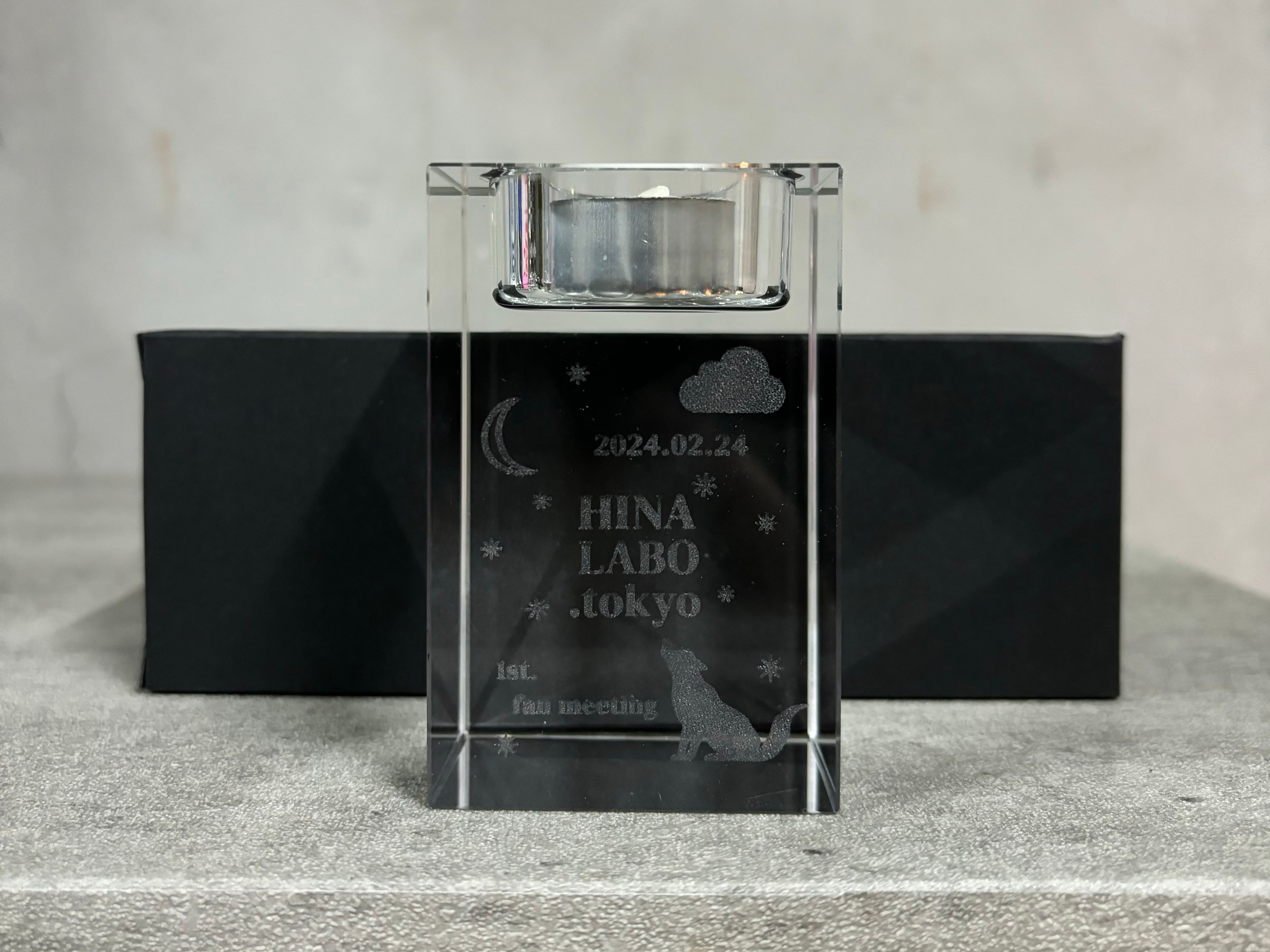 ガラスの素材に、オリジナルの刻印を施したキャンドルホルダーとなっています⭐︎